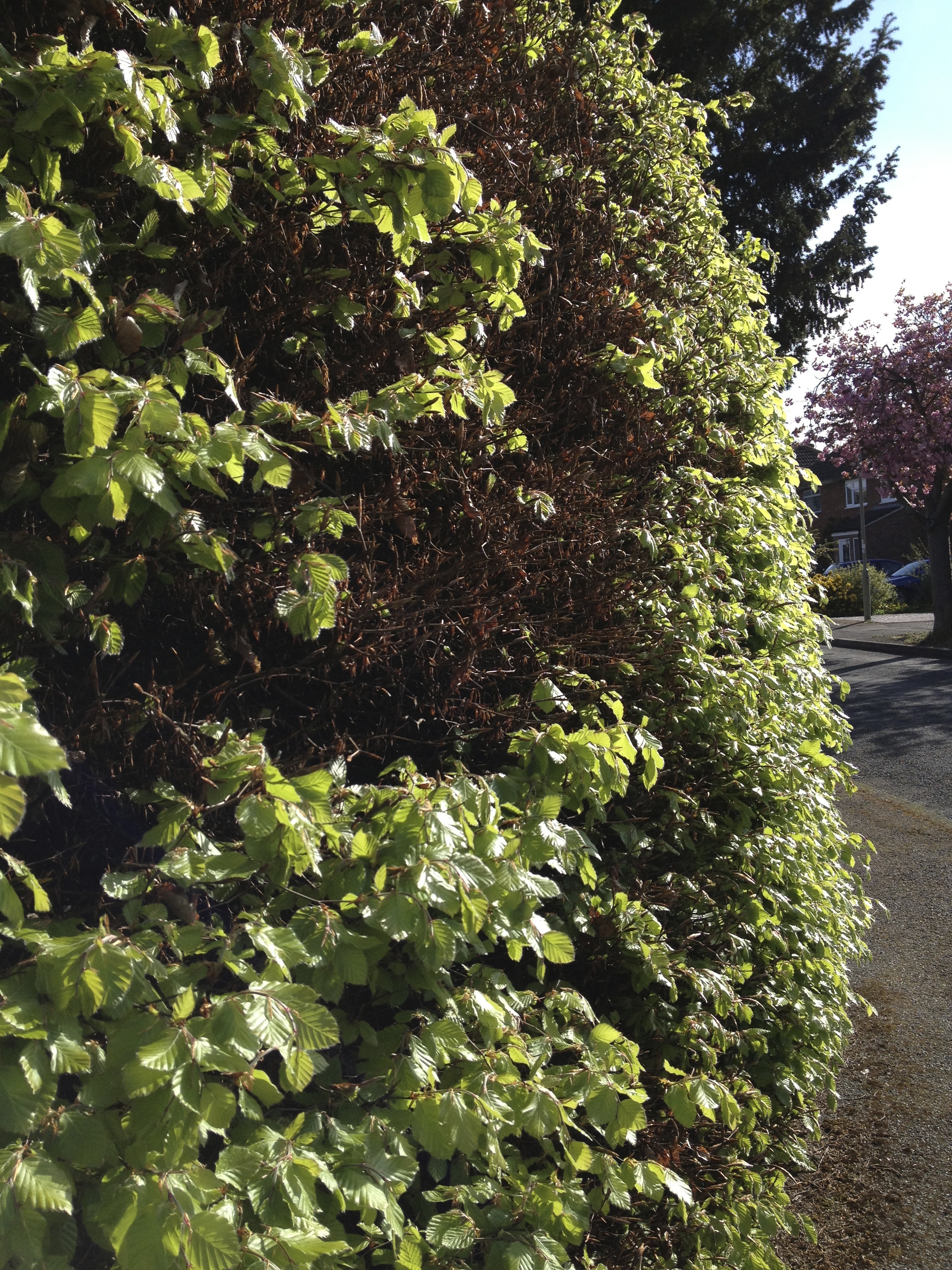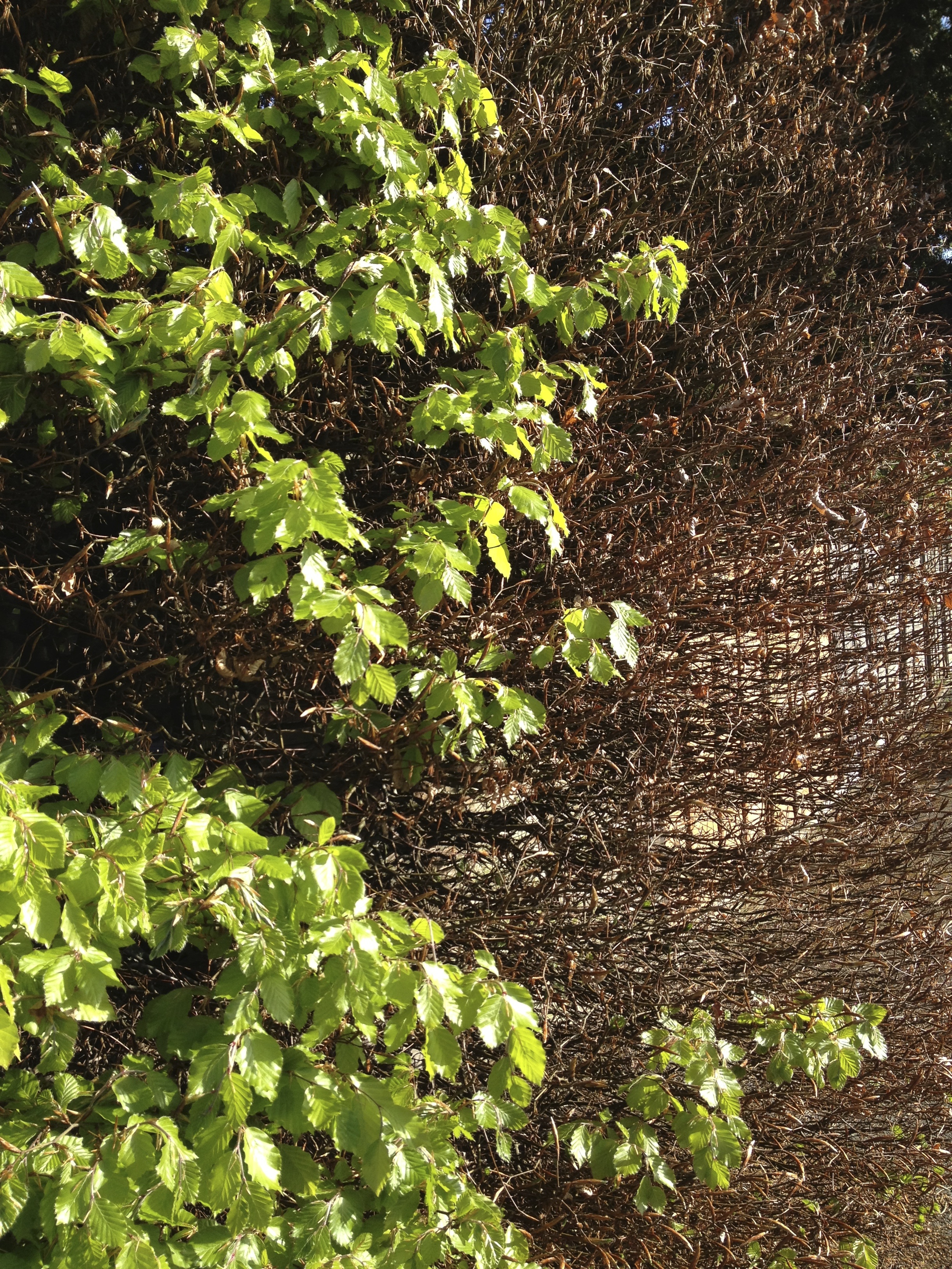 “Antes de chegar em casa, todos os dias, eu passo por um “muro” de planta. Quando eu cheguei aqui só se viam os galhos da planta, sem uma folha sequer, todo ele marrom; cheguei a pensar que tinha morrido, coitado, ninguém ia substituir o muro? Já dava até para enxergar a casa pelas frestas dos galhos. As semanas foram passando – eu já estou na minha sétima semana aqui – e eu vi, lentamente, folhas verdes nascendo no muro. No início eu fiquei meio desconfiada, porque as folhas eram muito verdes! E o muro, antes, estava muito seco. Comecei a formular teorias sobre a incidência do sol, se pegava mais de um lado, menos do outro (o muro fica numa esquina), talvez alguém tivesse molhado o local onde as folhas estavam nascendo ou talvez… Não sei, mas todos os dias eu passava e reparava no muro. Quando vi, comecei a torcer por ele e cada vez que eu via mais folhas nascendo, eu me animava pela “conquista” do muro.
